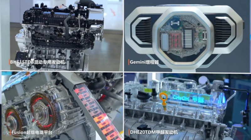在混动发动机方面,浩思动力重点展出的BHE15TDEB混动专用发动机,凭借47.26%的最高量产热效率被誉为“省油大师”,作为全球量产最高热效率混动发动机,实现车辆馈电油耗与动力的平衡输出。而现场展示的DHE20TDM甲醇发动机以48.15%的超高热效率通过权威认证,同时支持甲醇、乙醇等低碳燃料适配,为多场景零碳转型提供新选择。