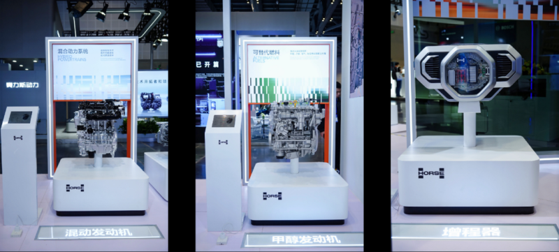 展会现场,浩思动力重点展示了多项动力技术。其中,Horse B15混动专用发动机(BHE15TDEB)凭借系统架构、燃烧系统等全方位优化,实现了量产最高热效率47.26%,在卓越动力基础上进一步优化馈电油耗,被誉为“省油大师”。Horse D20甲醇发动机 (DHE20TDM)以48.15%的超高热效率,为零碳转型提供了新的技术选择。